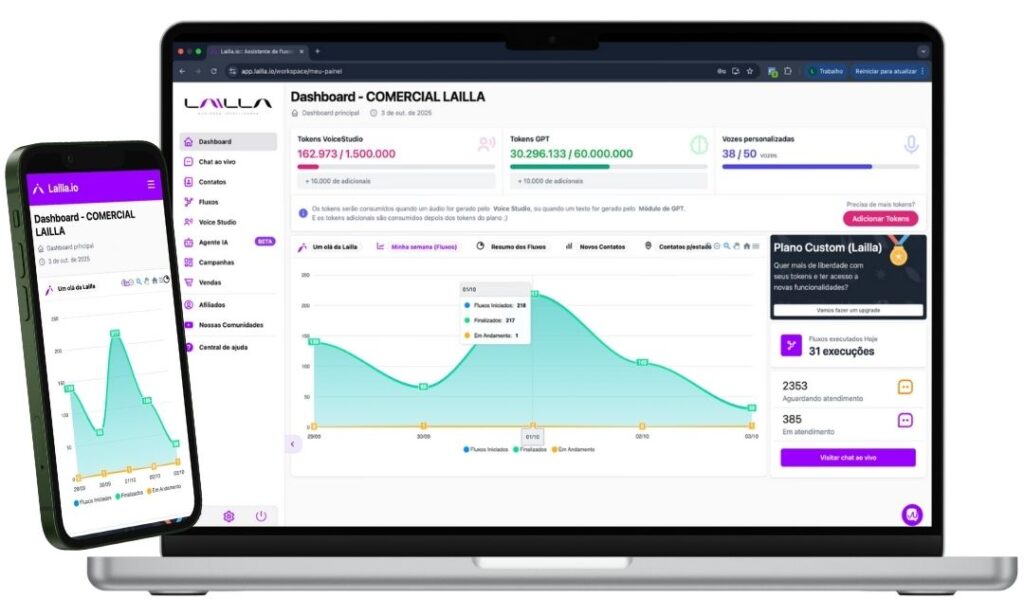 Use o Dashboard da Lailla para acompanhar as métricas, gerir sua equipe e tomar decisões